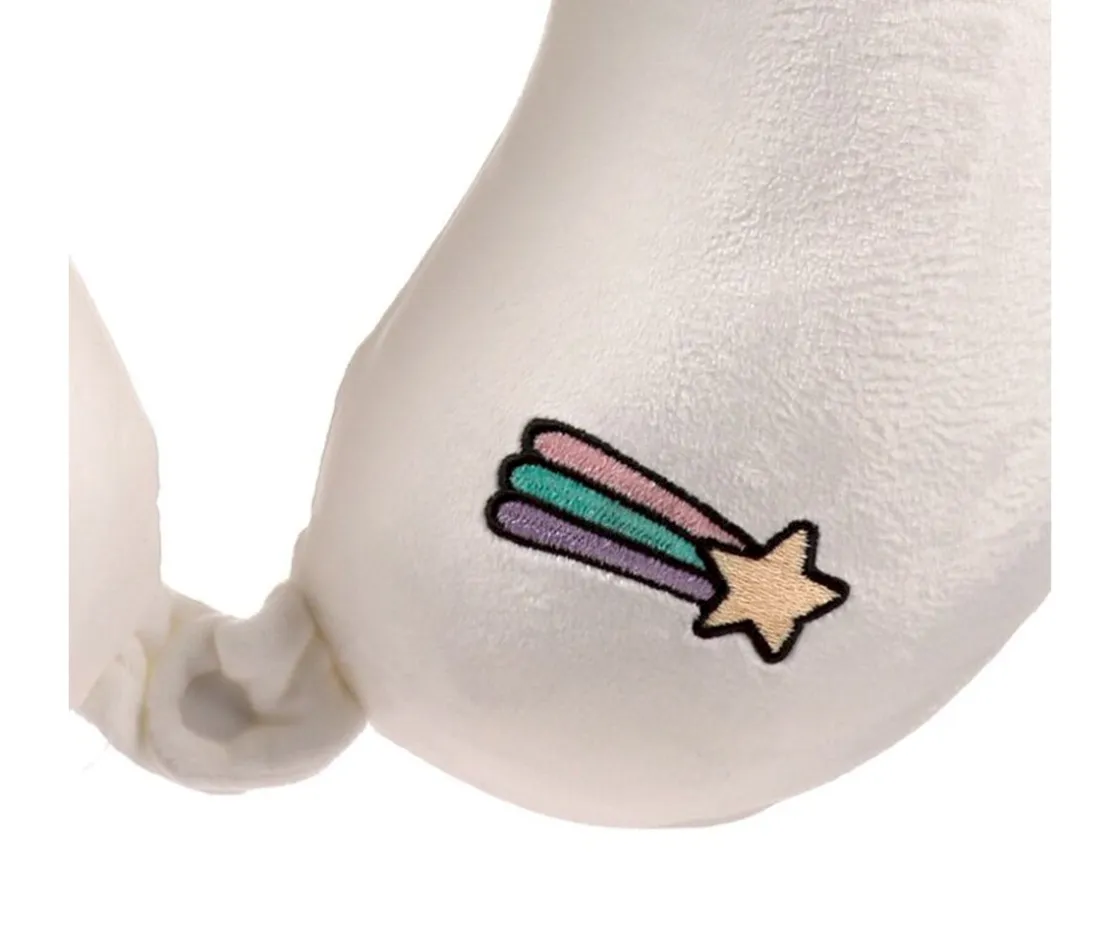Almohada infantil con bonito diseño de unicornio Puckator, con memoria de forma que se adapta al cuello para mayor confort. Su cierre a presión evita que se deslice, ideal para descansar durante trayectos en coche, tren o avión.