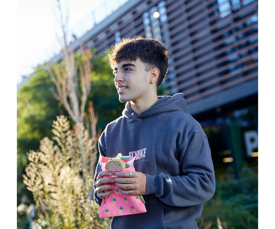 La bolsita porta snacks con la medida perfecta para llevar el sandwich o snack. Es reutilizable, muy fácil de limpiar, y ocupa tan poco espacio que la puedes llevar siempre contigo. Así podrás picar lo que quieras, donde y cuando quieras.