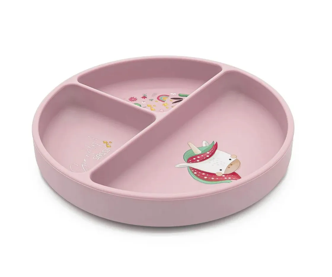 Los platos con compartimentos, son ideales para que los peques inicien por sí solitos la alimentación y así, separar los alimentos y poder cogerlos de forma autónoma. Sassi presenta su colección de platos de silicona con ventosa en la base y adorables diseños de sus personajes.
