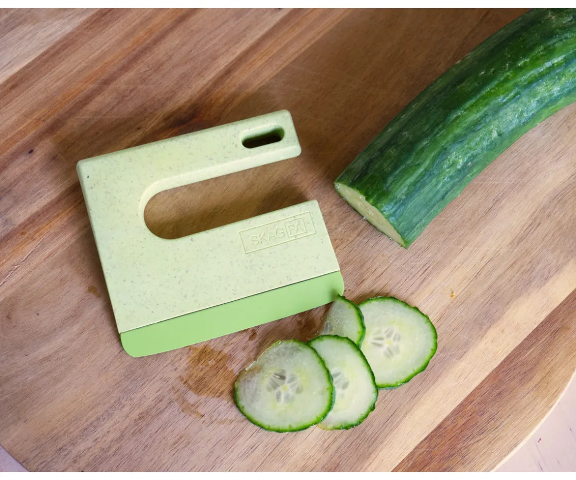 - Material: hoja de acero inoxidable no afilada, mango de fibra de trigo (30%) y polipropileno