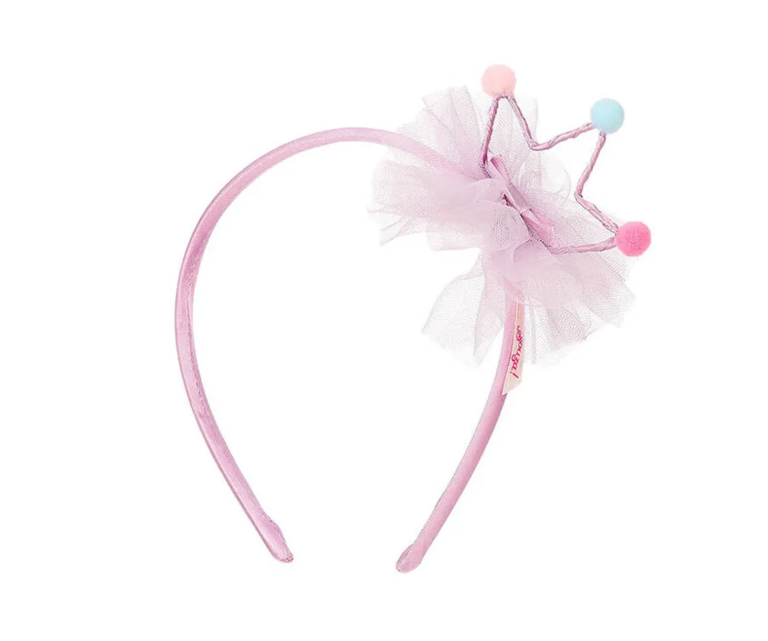La diadema rosa Jazzlyn de Souza es el accesorio perfecto para completar cualquier look mágico. Diseñada en Holanda y pensada para las pequeñas amantes de la fantasía, combina una elegante flor de tul en varias capas con una corona satinada coronada por tres mini pompones, creando un complemento delicado, dulce y muy especial.