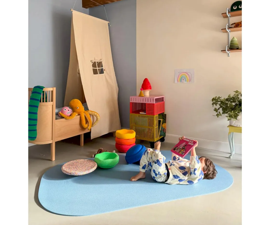 La alfombra de juegos Staplestein Mat se convertirá en el lugar ideal de aventuras y juegos para los peques y no tan peques. Ambas superficies ofrecen un agarre seguro y fomenta el desarrollo motriz, invitando al movimiento sin restricciones.