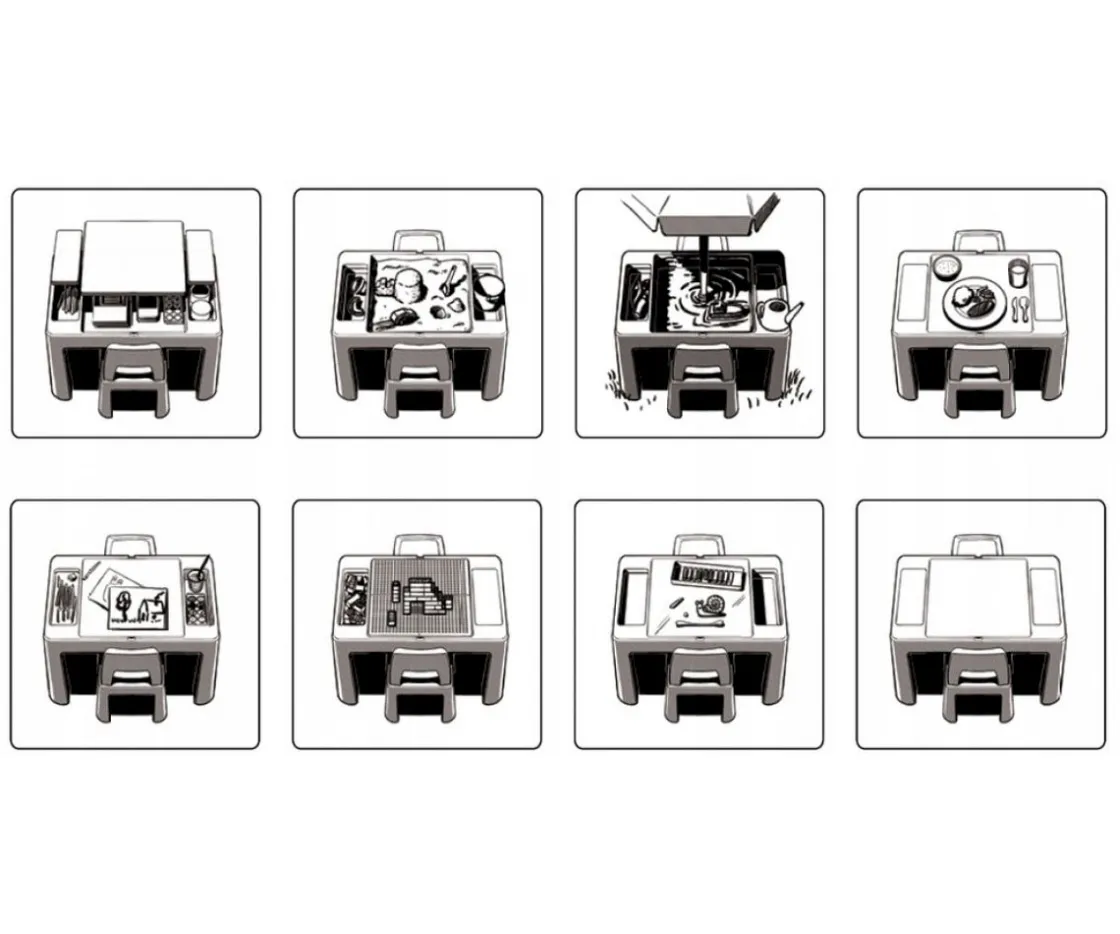 - Tablero con superficie lisa, para que los peques juegen a juegos de mesa, pinten o realicen manualidades