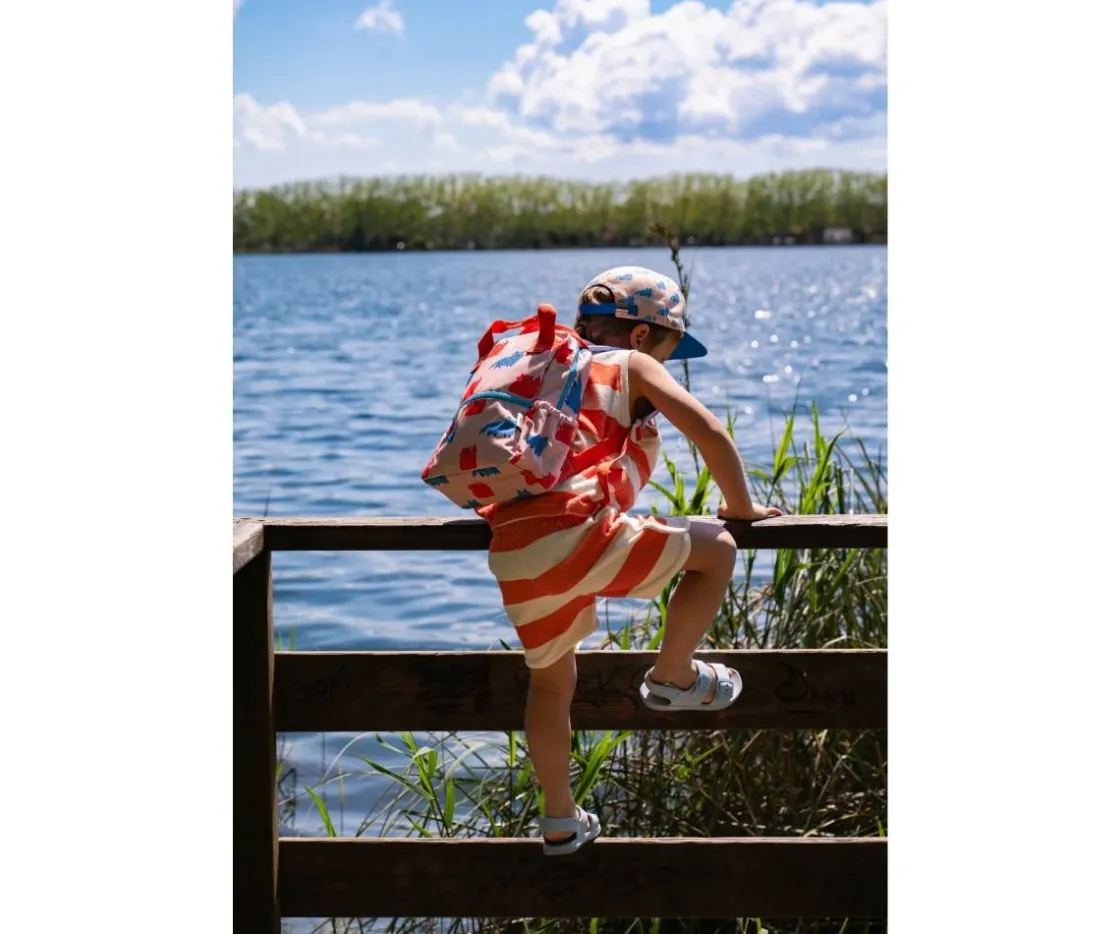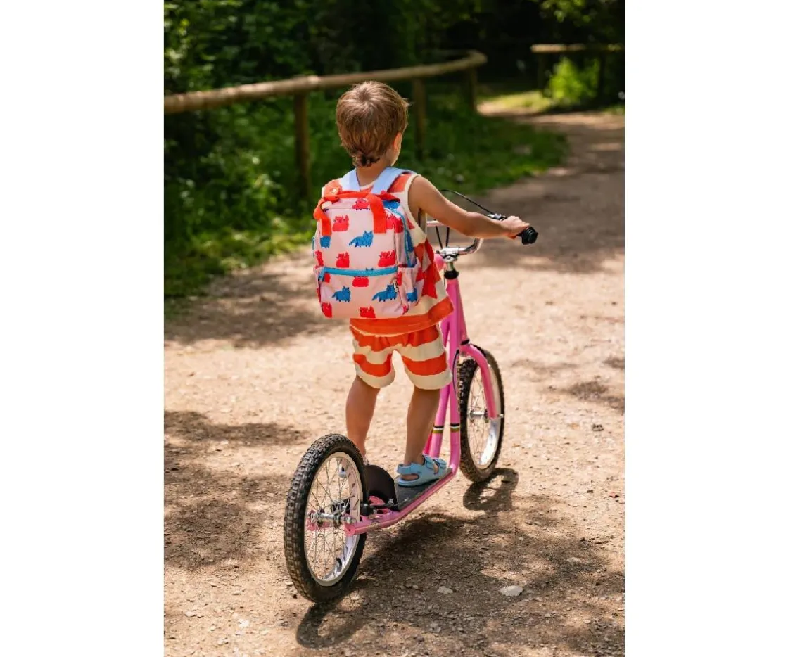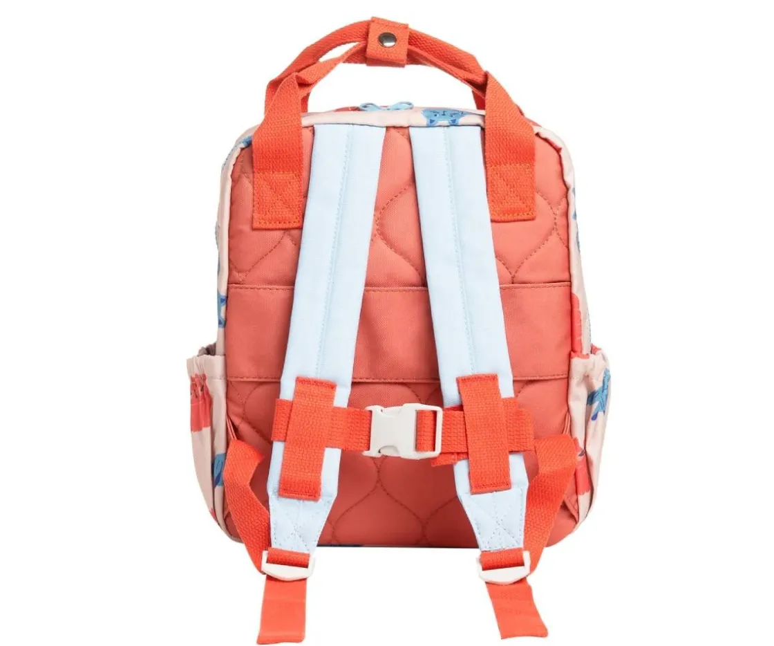 Con un diseño de lo más divertido, cuenta con un amplio bolsillo principal con cremallera, un bolsillo frontal también con cierre de cremallera y bolsillos laterales elásticos ideales para botellas o paraguas. Sus correas acolchadas y el cierre de clip en el pecho aseguran un ajuste cómodo y seguro.