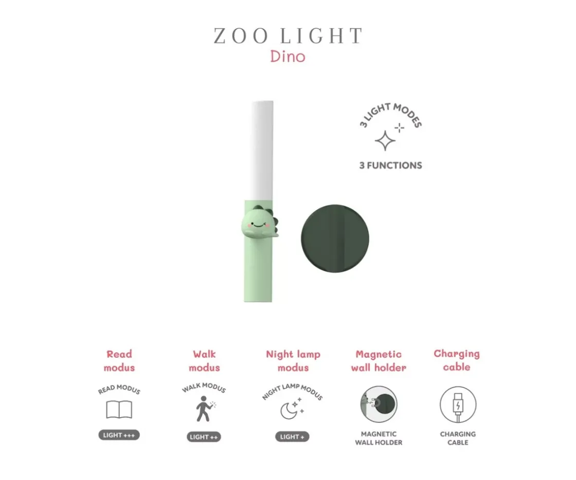 Una encantadora luz nocturna con forma de dinosaurio que aporta seguridad, confort y diversión durante el día y la noche.