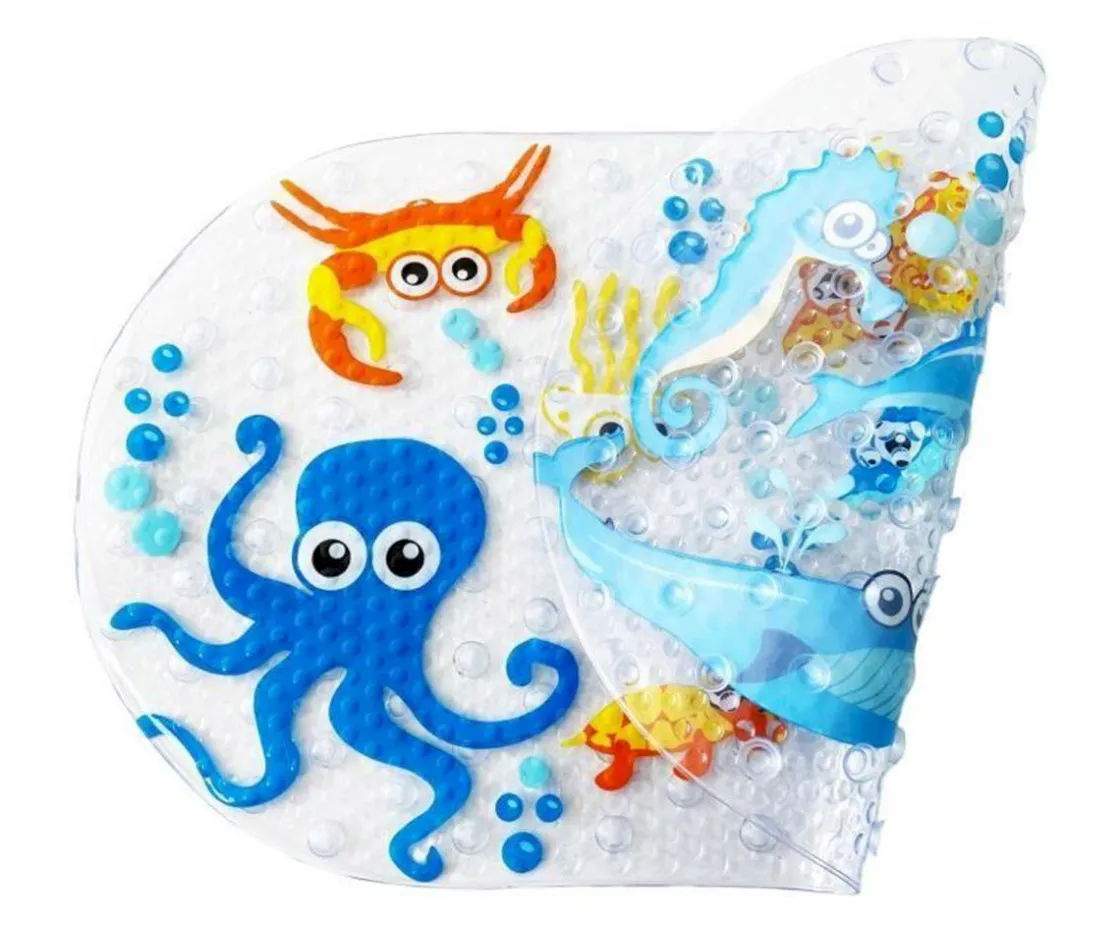 Evita resbalones en la ducha o bañera con la alfombra antideslizante y sus dibujos de animales marinos de Thermobaby. Más seguridad y diversión a la hora del baño.