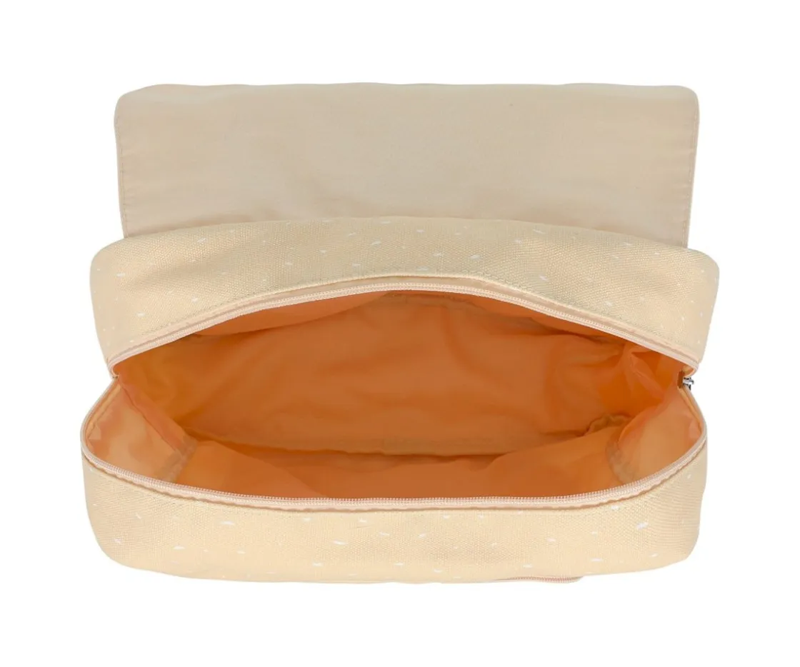 Cuenta con un gran compartimento principal con cierre de cremallera, un bolsillo interior abierto para pequeños objetos, un bolsillito exterior frontal con cierre de cremallera y una solapa con cierre magnético que representa la carita de este alegre presonaje Trixie.Además un clip de pecho para que llevarla sea mucho más cómodo.