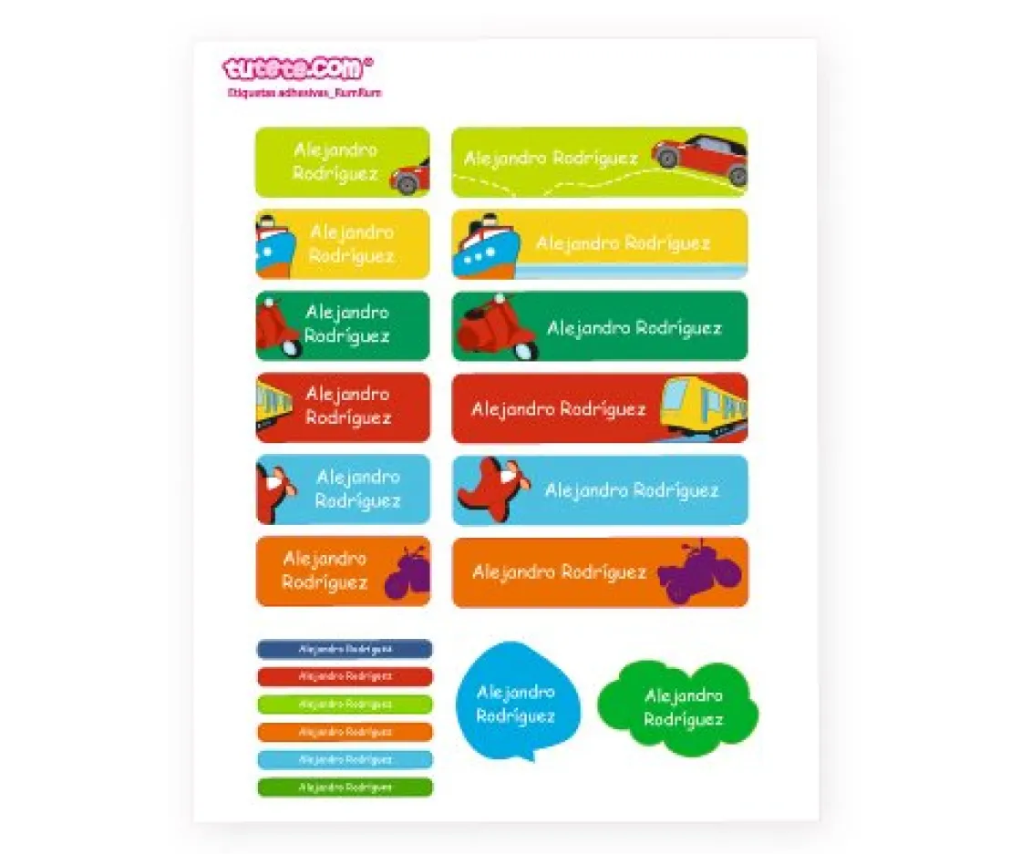 Práctico pack de 20 etiquetas adhesivas personalizadas con el que podrás etiquetar libros, fiambreras, juguetes, botellas…