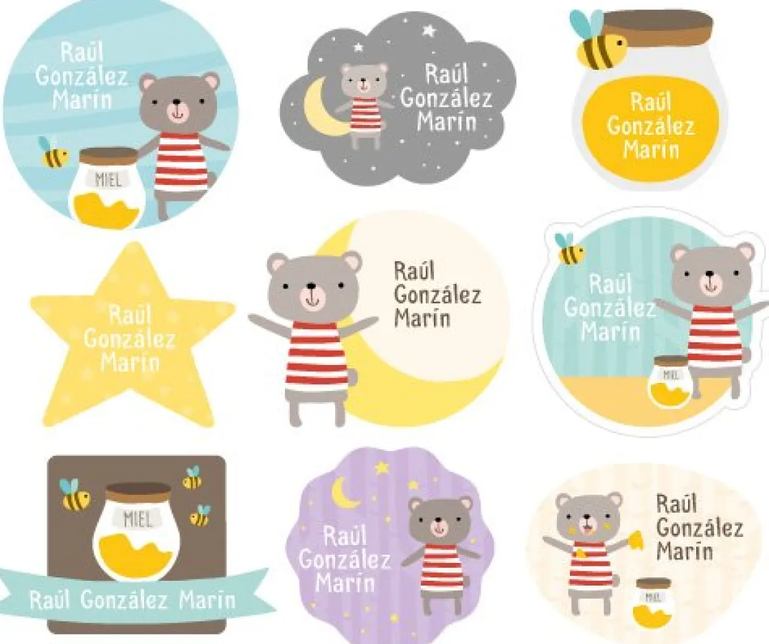 Tutete 30 Pegatinas para Objetos Osito^ Etiquetas Personalizadas