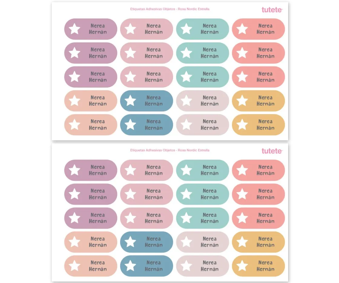 Tutete 40 Pegatinas para Objetos Rosa Nordic Estrella^ Etiquetas Personalizadas