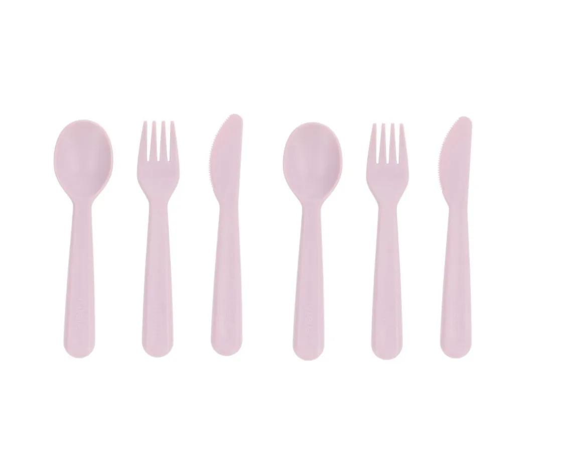 Set de cubiertos formado por 2 tenedores, 2 cucharas y 2 cuchillos. Tiene el tamaño y la forma perfecta para que los peques los puedan agarrar fácilmente, además son duraderos y con extremidades redondeadas.