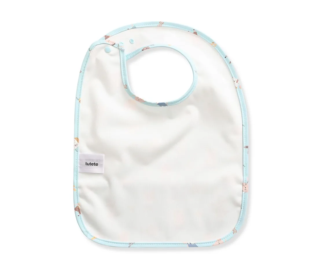 Tutete presenta el babero impermeable con bolsillo recogemigas que será compañero ideal para comidas más divertidas y sin preocupaciones. Diseñado pensando en la comodidad de los más pequeños y la tranquilidad de los papás, está confeccionado en una resistente mezcla de PU y poliéster, materiales duraderos y fáciles de limpiar.
