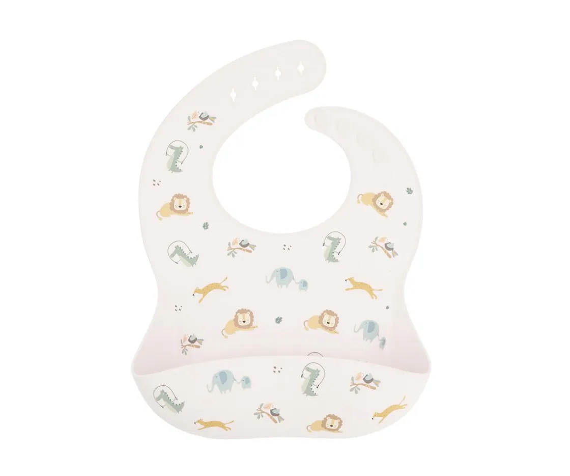 El babero de silicona de la colección Savannah de Tutete es ideal para los bebés con piel sensible, ya que no contienen productos químicos ni materiales que puedan causar alergias. Además son resistentes a las manchas y muy fáciles de limpiar.