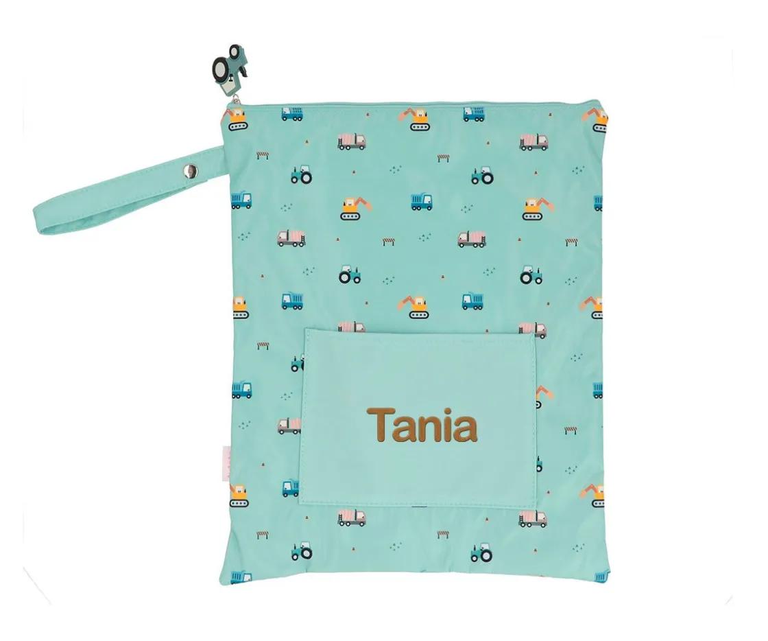 Tienen un bolsillo exterior delantero abierto para los artículos que quieras tener más a mano y que puedes personalizar con el nombre de tu peque sin que la bolsa pierda la permeabilidad.