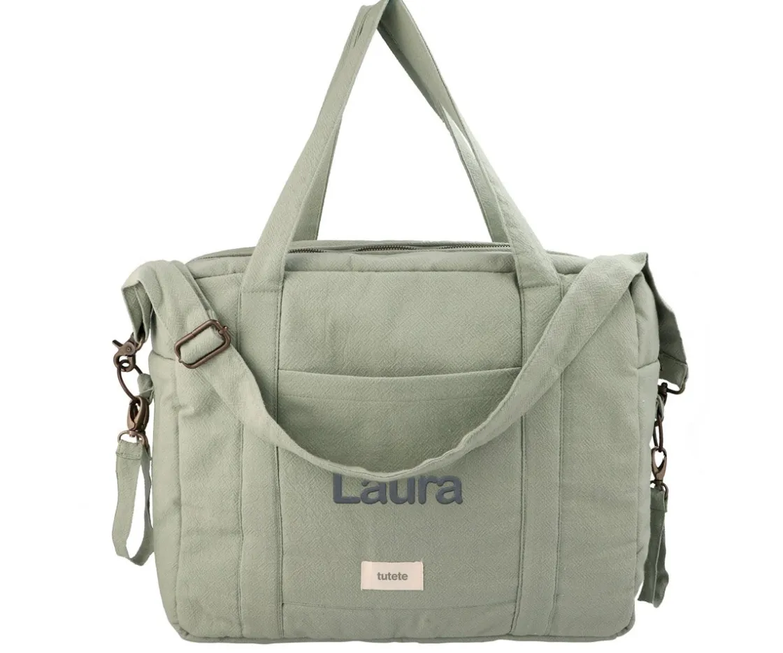 Se puede personalizar, en el bolsillo exterior delantero, con el nombre de tu bebé.