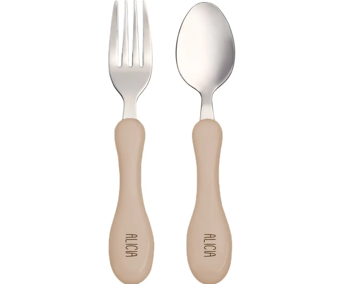 Set de cubiertos compuesto por cuchara y tenedor.