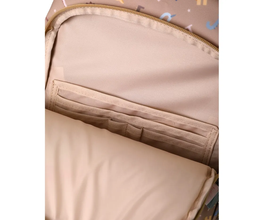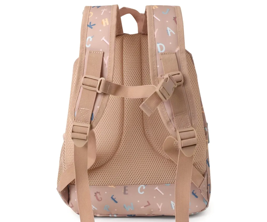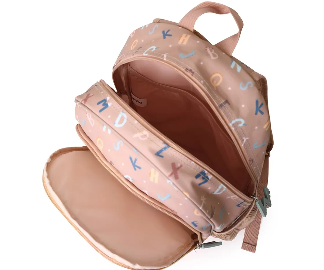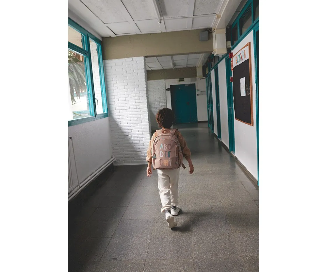 Mochila Escolar Mediana Personalizable de la Colección Vuelta al Cole Funny Letters de Tutete que puedes personalizar con el llavero personalizable que incluyen de regalo.
