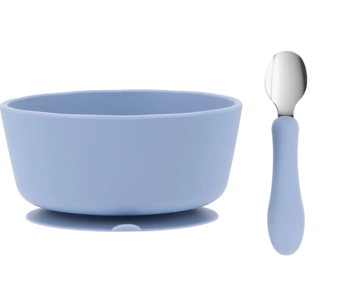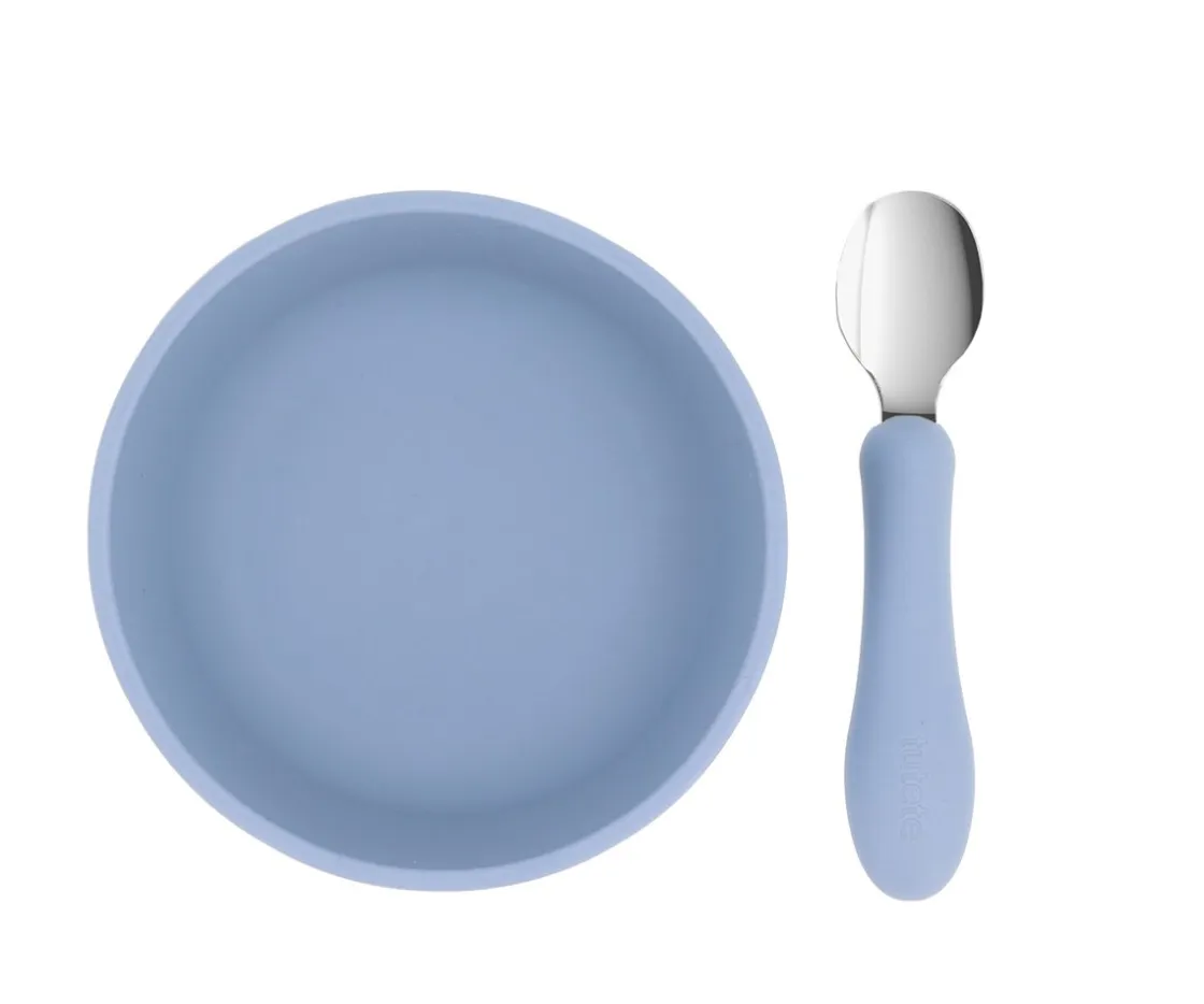Incluye un babero de silicona con bolsillito recogedor, un bol de silicona con ventosa y una cuchara con mango de silicona y cabeza de acero inoxidable, tres básicos diseñados para hacer que la hora de comer sea más cómoda, limpia y segura.
