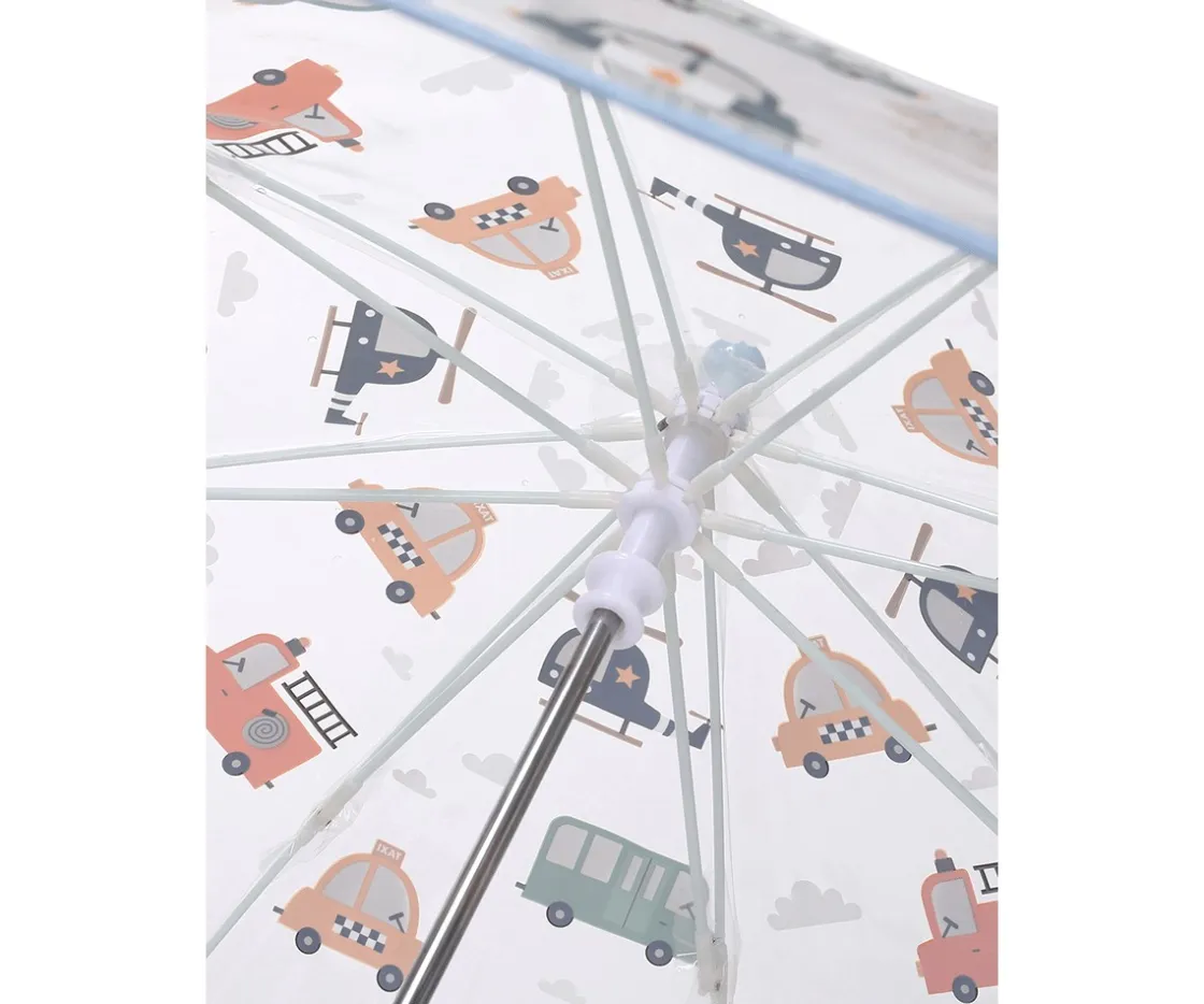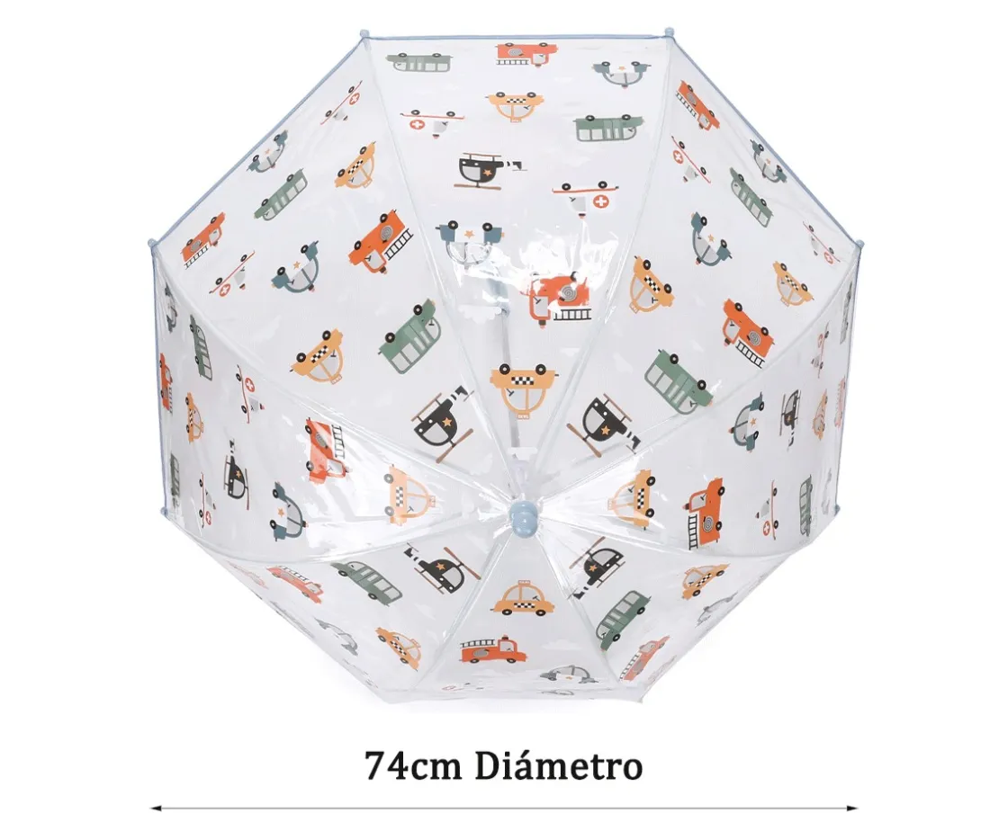 Paraguas Infantil Transparente de la Colección Vuelta al Cole City Cars de Tutete.