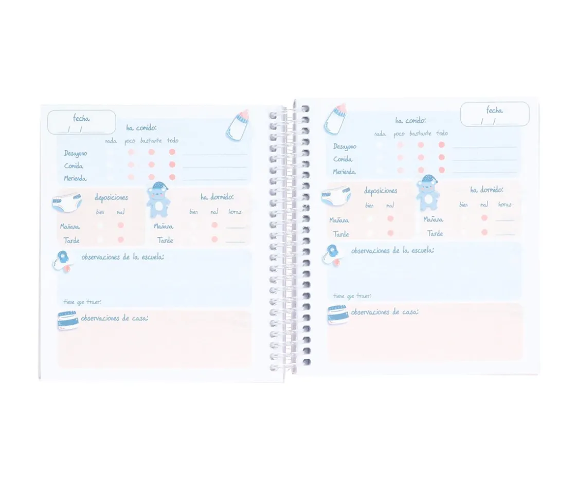 - En las imágenes puedes visualizar las páginas interiores de la agenda, portada, contraportada y la etiqueta adhesiva con la que puedes personalizar la agenda.