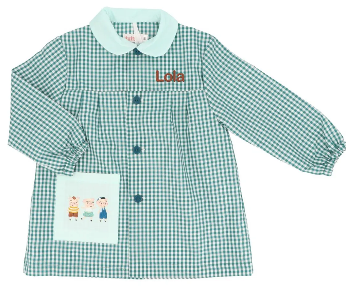 Fabricados especialmente para Tutete por fabricantes especializados en grandes marcas, los babis Seber cierran en la parte delantera mediante botones y cuentan con un bolsillo bordado con los originales diseños de la Vuelta al Cole 2025 de Tutete.