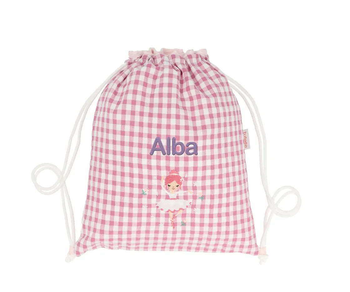 Las originales mochilas saco con dibujo bordado de las colecciones de Tutete Vuelta al Cole 2024 son ideales para llevar el almuerzo, la merienda o una muda al cole así como a actividades extraescolares.