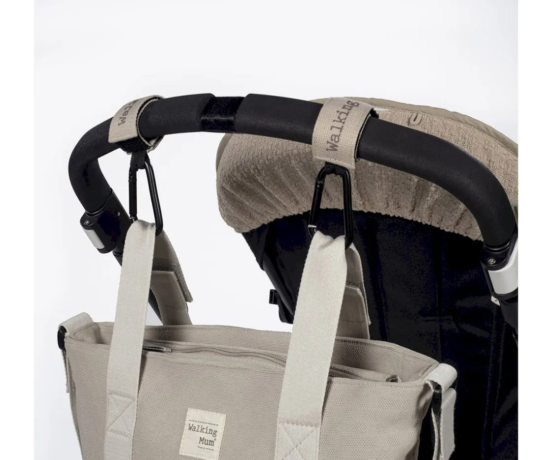 Con estos dos ganchos de , podrás colocar el bolso cambiador de bebé o llevar bolsas adicionales cuando vas a hacer la compra.