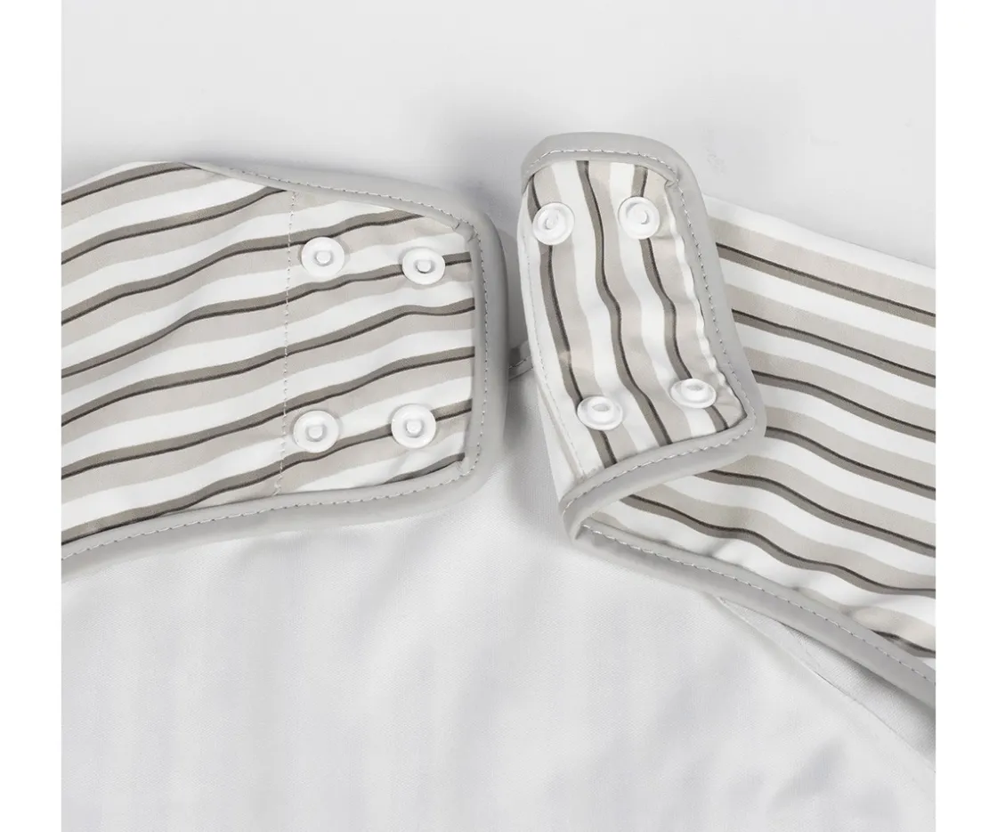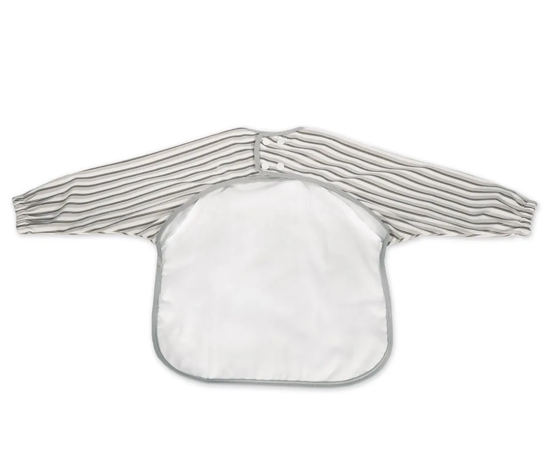 Divertido babero con mangas e impermeable de Walking Mum, ideal para bebés de 6 meses a 3 años. Con diseño unisex, ofrece máxima protección gracias a sus mangas largas con puños elásticos y un amplio bolsillo recogemigas.Hecho de material impermeable, fácil de limpiar y perfecto para comidas, BLW y manualidades.