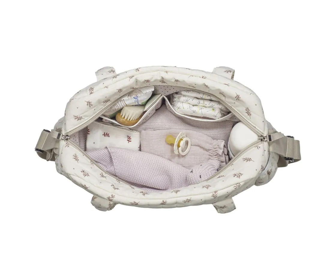 - Incluye asa larga regulable para colgar en el cochecito y asas de mano