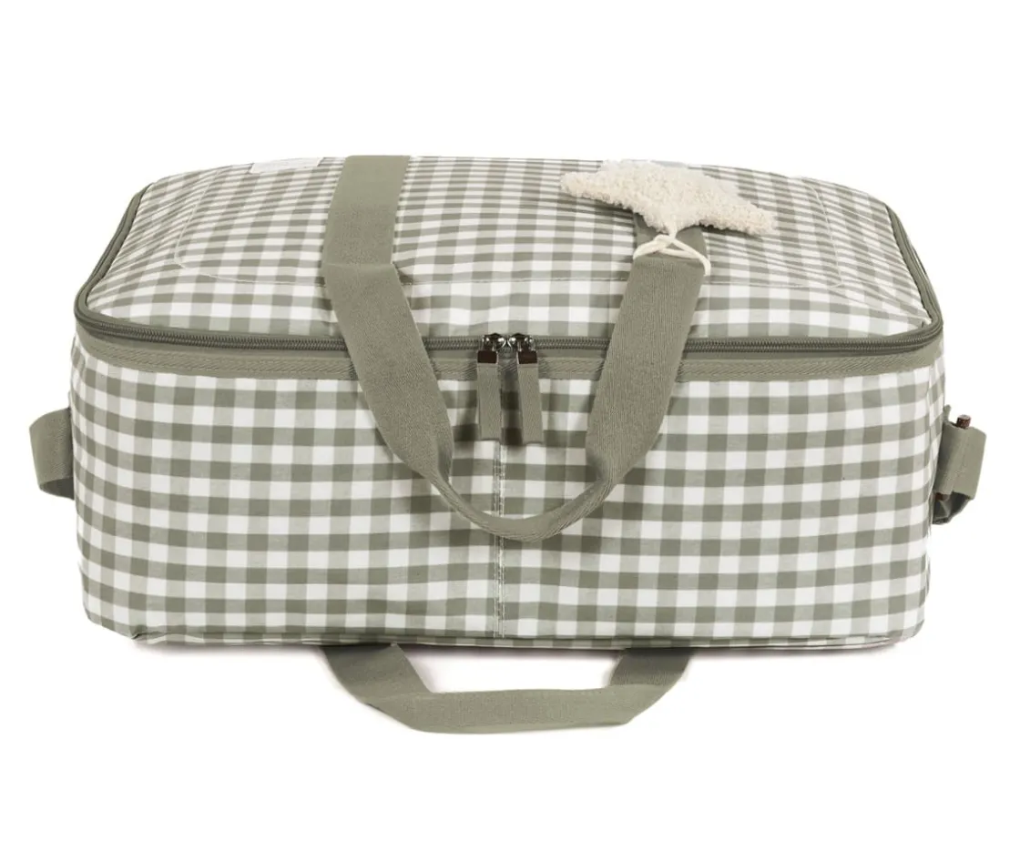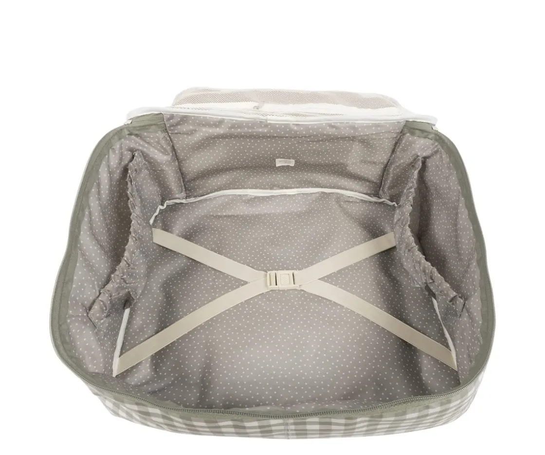 La maleta de la colección Caetana Stone de Walking Mum, es ideal para el momento más importante del embarazo: la llegada del bebé. Con un diseño que refleja calidez y dulzura de cuadros vichy, es cómoda, ligera y fácil de manejar, con cremalleras en ambos sentidos y asas tanto larga como cortas para un cómodo agarre. En su interior, tiene un forro a juego, gomas elásticas para mantener la ropa en su sitio y bolsillos abiertos en ambos lados.
