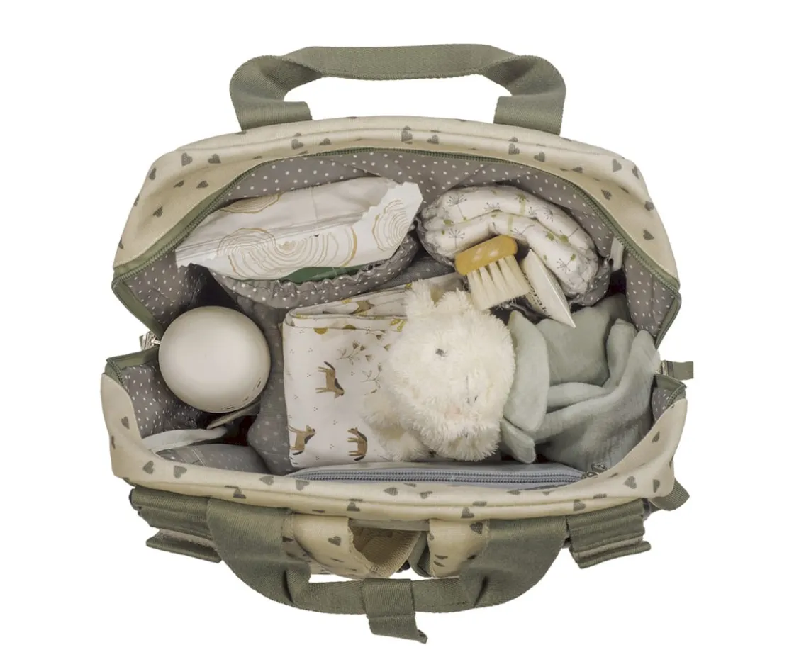 Mochila que además es una bolsa canastilla muy ligera, resistente y de gran capacidad de la colección corazones Poppy Moss de Walking Mum, para llevar todo lo necesario para el paseo del bebé. El bolso incluye 2 asas cortas ajustables que facilitan la colocación en cualquier modelo de silla de paseo, asas de mano y correas acolchadas para colgar en la espalda y llevarla contigo cómodamente.
