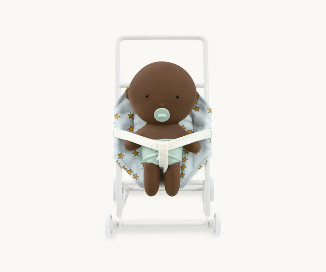 Con este cochecito tu muñeco Gommu pocket paseará con estilo y seguro gracias a su cinta elástica.