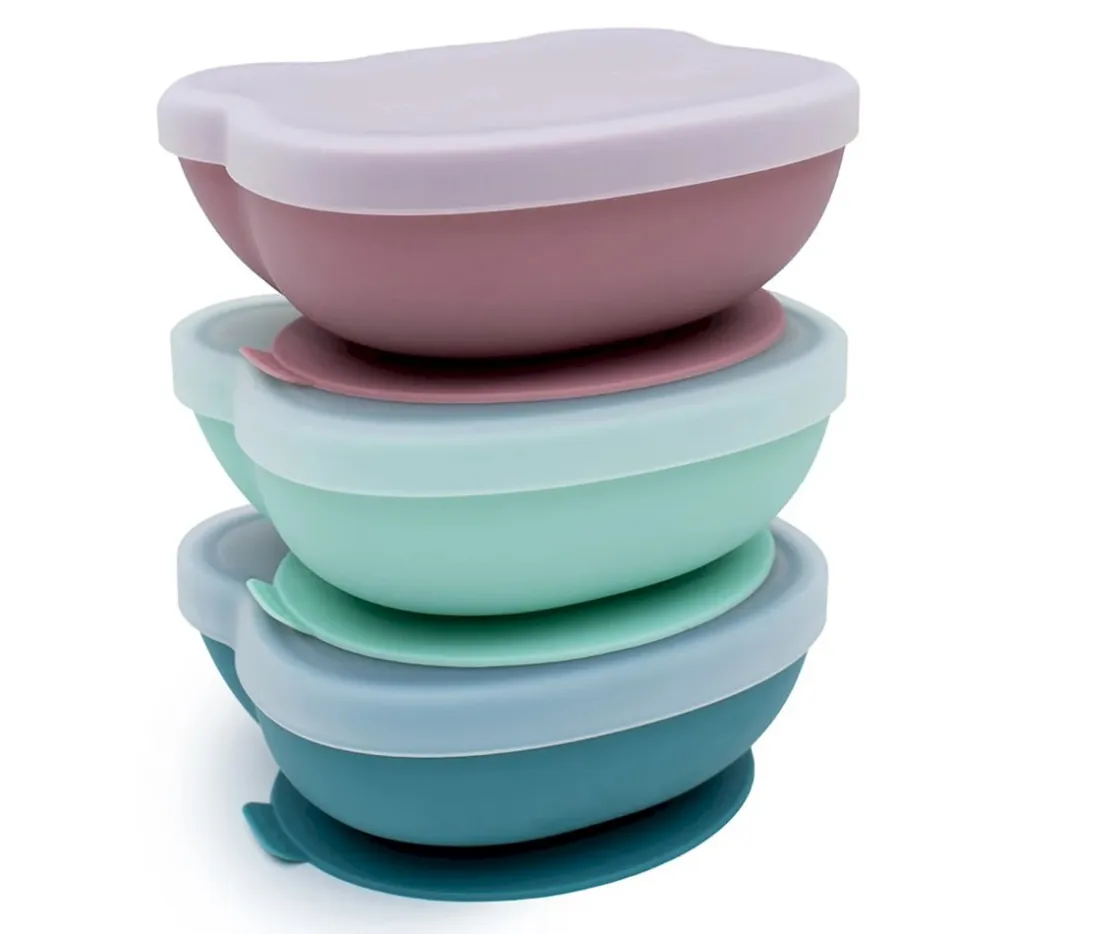 Bol con ventosa y tapa, diseñados para que se queden fijados a la mesa y no terminen volcados por el suelo.