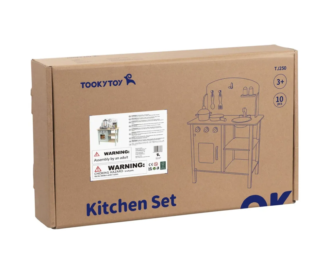 Una preciosa cocina de madera en tonos pastel que será el pasatiempo preferido para los pequeños chefs y respoteros de la casa. Cuenta con todo tipo de detalles y accesorios para que los peques den rienda suelta a su imaginación y elaboren sus deliciosas recetas.
