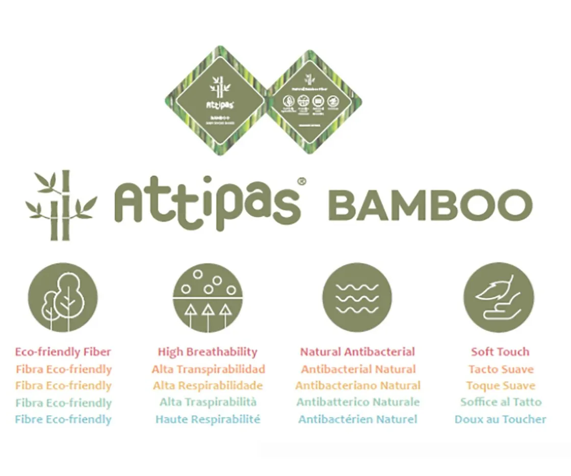 Modelo fabricado con fibra de bambú, más transpirable, suave y fresco que el algodón. Además estos modelos tienen la “caña” más baja que los modelos Attipas habituales