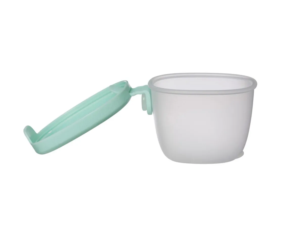 - Tapa con bisagra única que se adhiere al recipiente de forma segura para evitar pérdidas y facilitar su uso