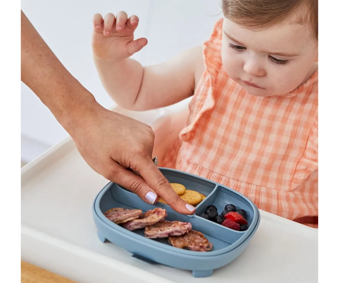 Este plato 2 en 1 de B.Box tiene una base de silicona para una succión fuerte en superficies lisas y que además, podrás quitarlo, para utilizarlo como un plato normal a medida que el niño crece. Tiene un divisor que es extraíble, para poder separar los alimentos y que así, aprenda a comer de forma independiente.