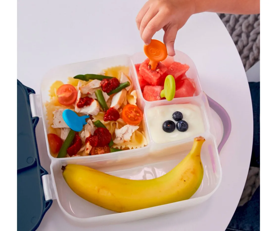 Set de 3 unidades de mini tenedores para disfrutar con frutas, verduras y carne de forma limpia y segura. Sus exclusivas púas redondeadas son ideales para pinchar alimentos y comer de manera segura. El mango grande facilita el agarre y ofrece control al comer. Además, su diseño compacto hace que quepan perfectamente en la mayoría de fiambreras y depósitos , ya sea para la escuela o para llevar contigo a cualquier lugar.
