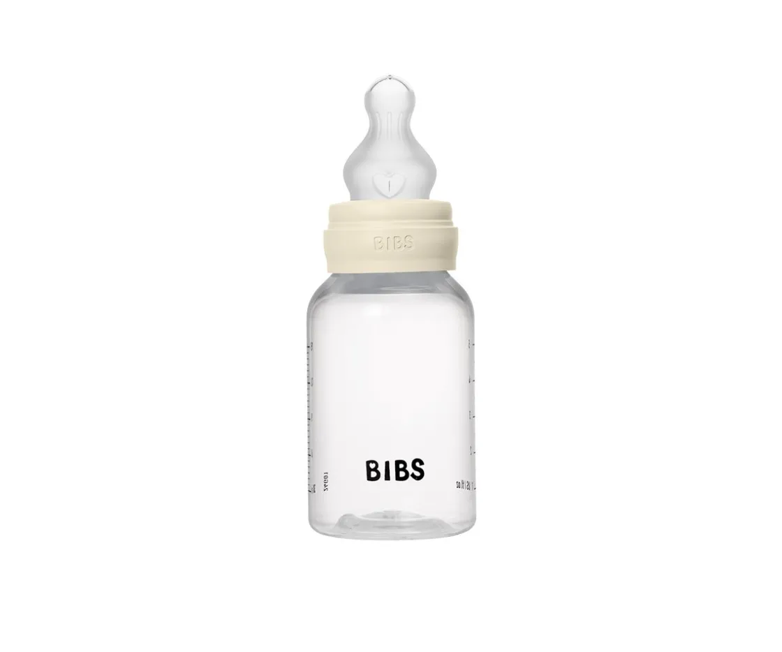 Nuevo biberón de plástico BIBS de 150ml de capacidad, más ligero y fácil se sujetar y compatible con todos los accesorios para biberones de la marca.
