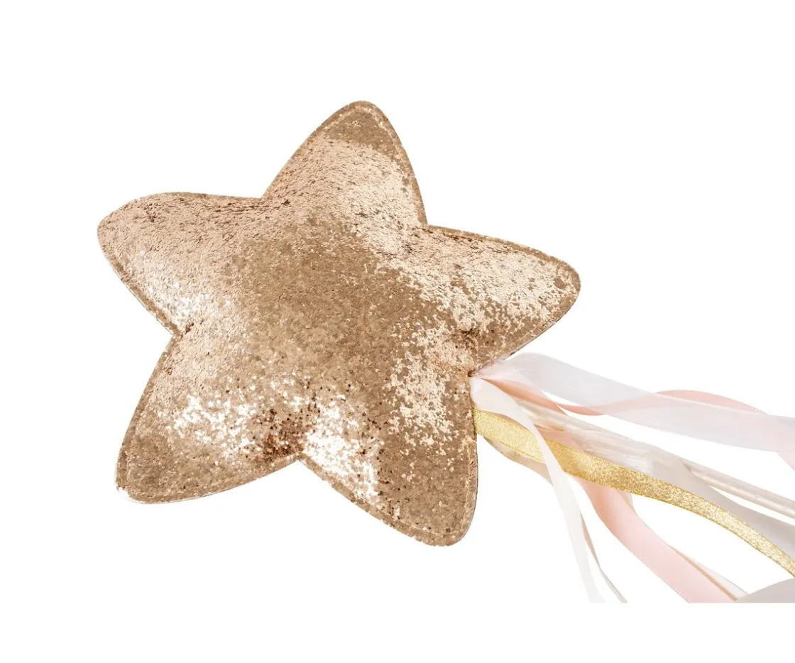 La varita con purpurina dorada brillante cuenta con coloridas cintas pastel de raso que le darán a tus hechizos un toque extra de magia.