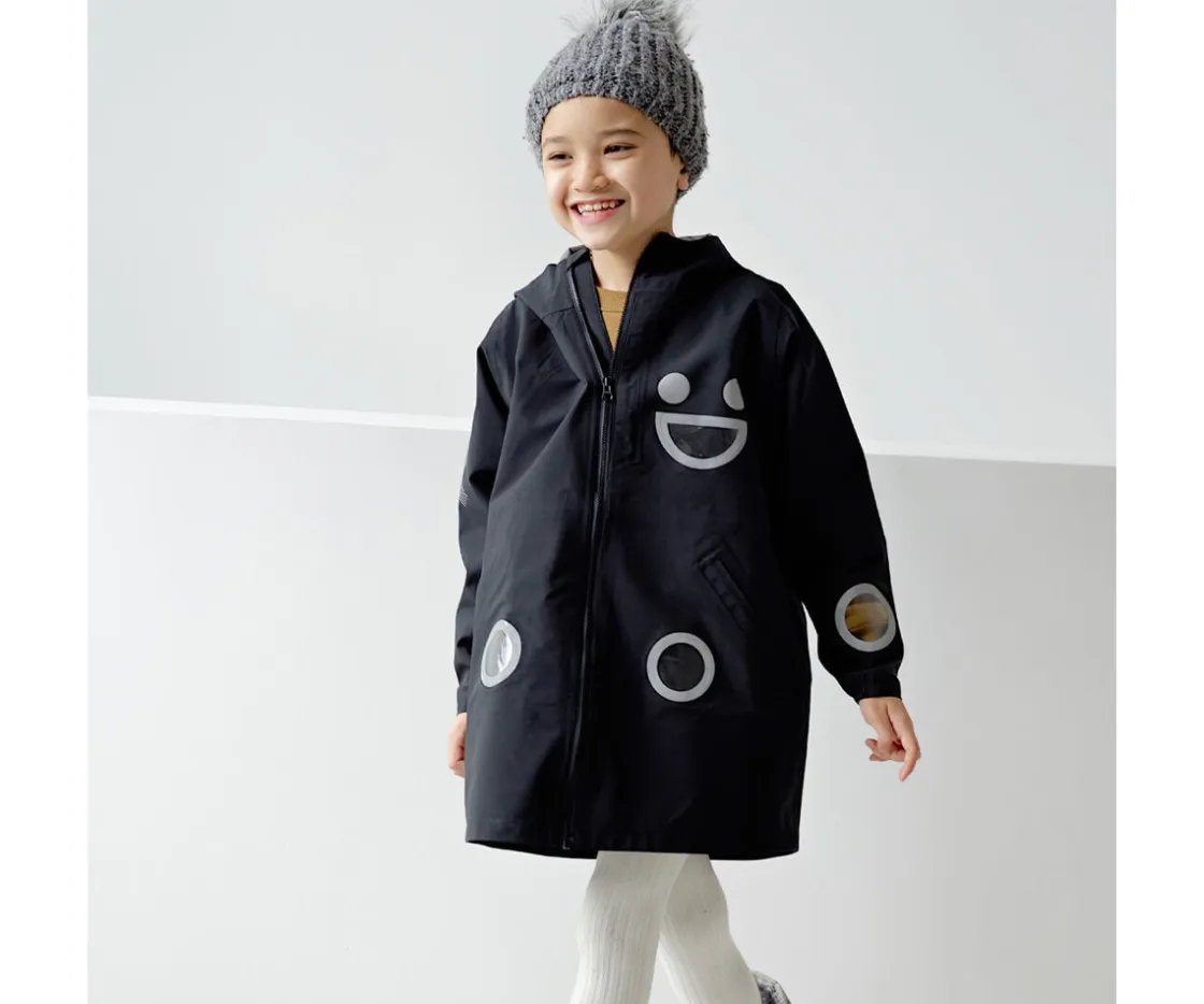 Su innovador estampado reflectante 360º, que se ilumina cuando recibe luz, aporta una capa extra de seguridad mientras los peques corren, cruzan la calle o van en bicicleta. ¡Los divertidos “happy faces” que brillan en la oscuridad la convierten en una prenda mágica y súper original!