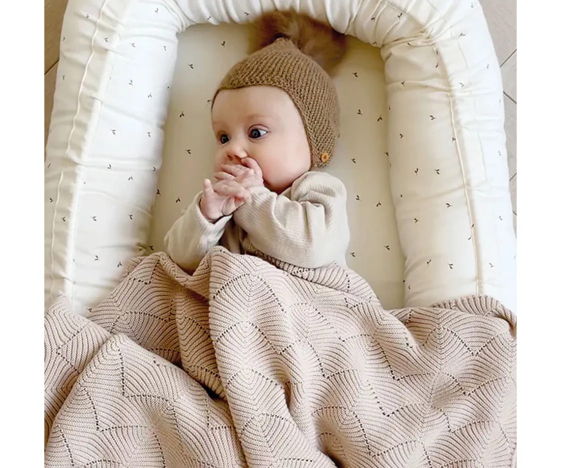 Descubre la manta de punto de Cam Cam, con un tacto exquisito y una suavidad inigualable. Su delicado diseño de ondas la hace única. Confeccionada con algodón orgánico puro, es ideal para paseos en cochecito o para usar en casa. Además, cuenta con la certificación GOTS, garantizando su calidad y sostenibilidad.