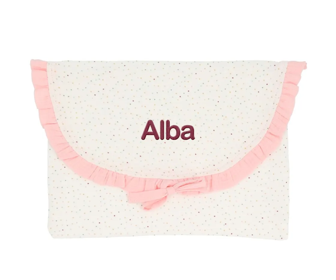 Otro modelo de bolsa para llevar la muda de recambio dentro del bolso del carro bebé. Con una solapa y cierre en lazo, lo tendrás todo ordenador dentro de tu bolso cambiador.