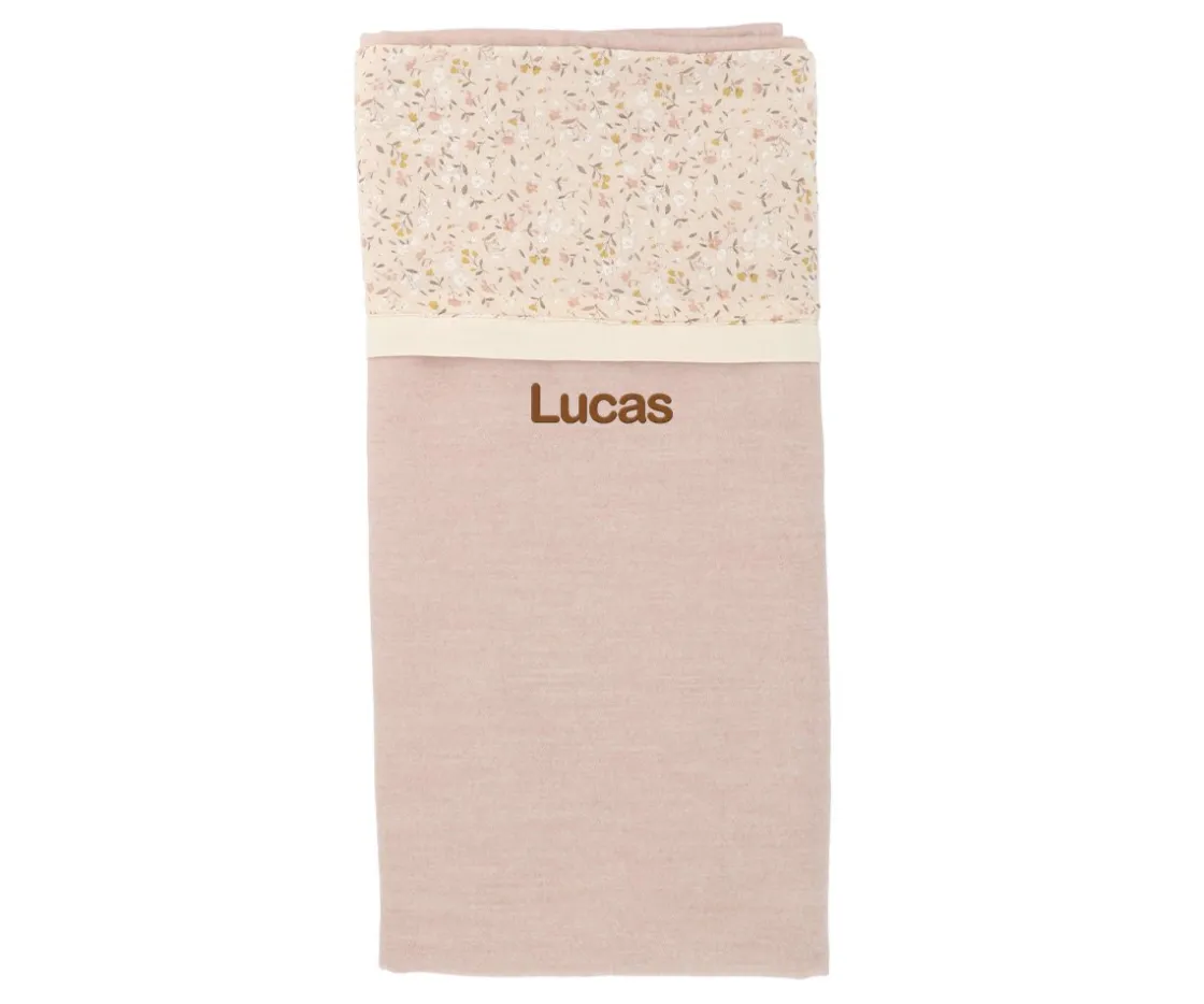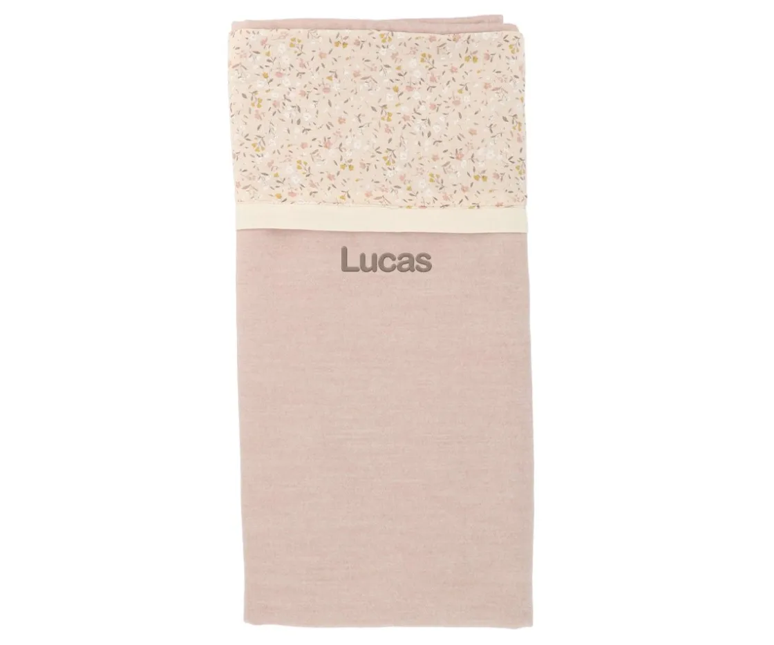 Manta confeccionada en algodón muy suave y envolvente, ideal para el cochecito o la cuna.¡Puedes personalizarla para convertirla en un regalo de nacimiento ideal!