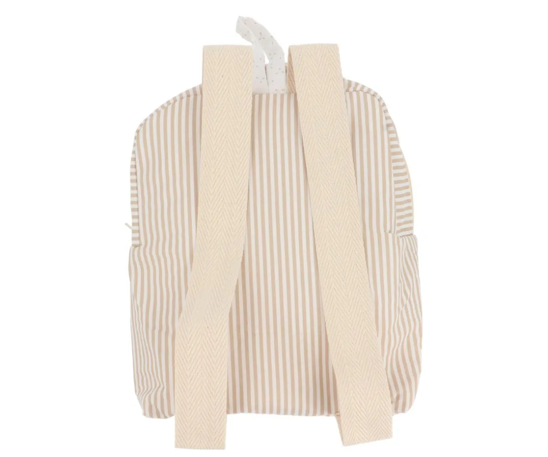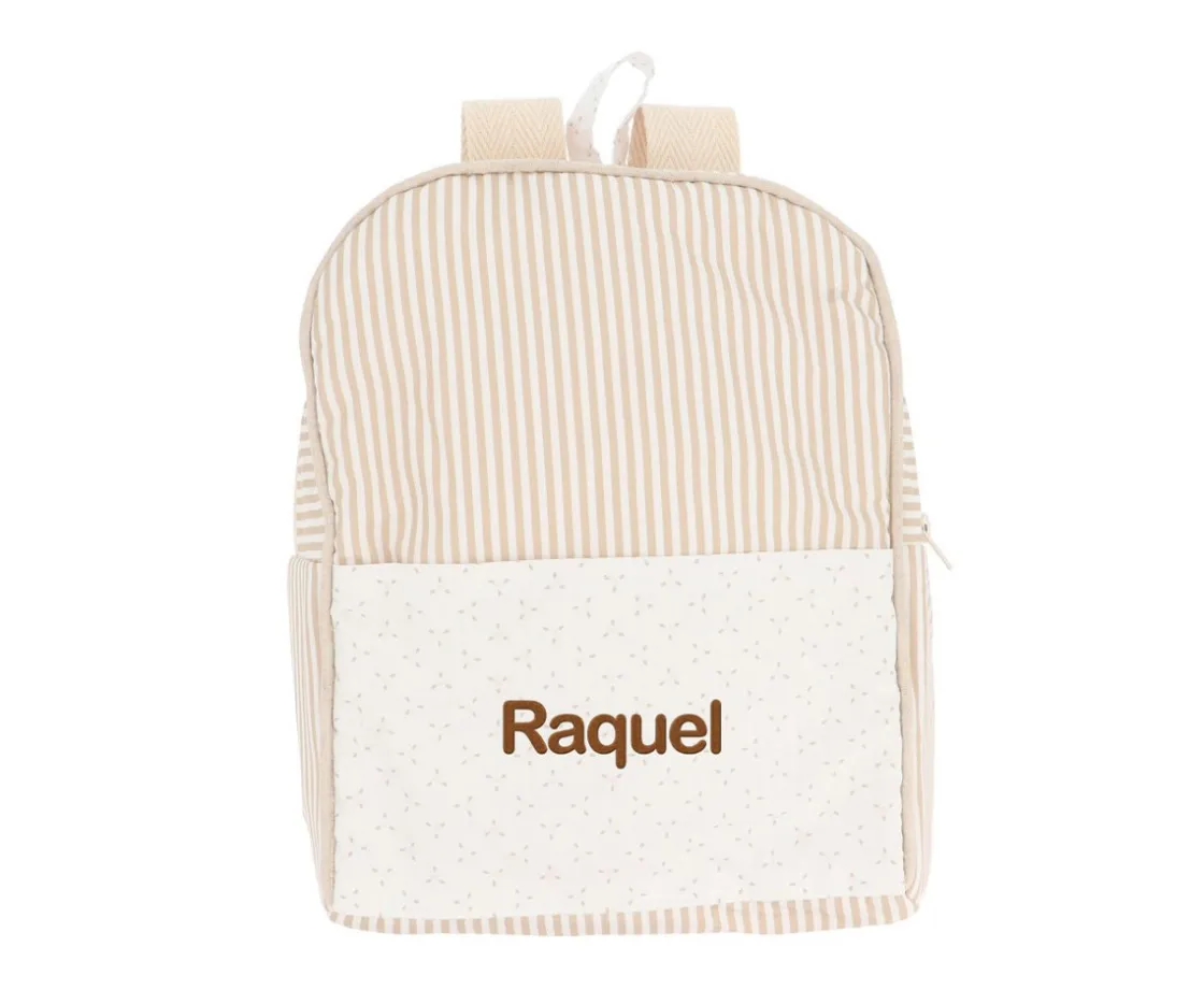 Mochila de tela ideal para llevar las mudas a la escuela infantil o primeros cursos del colegio. Se puede colgar fácilmente en una percha o gancho gracias al asa que lleva en la parte superior.