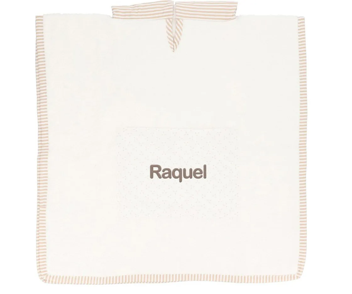 Con este poncho de Cristina de Jos´h, los peques estarán bien arropaditos cuando salgan del baño. Este poncho cuenta con un bolsillo deltantero que se puede personalizar con el nombre del peque para hacerlo único y especial.