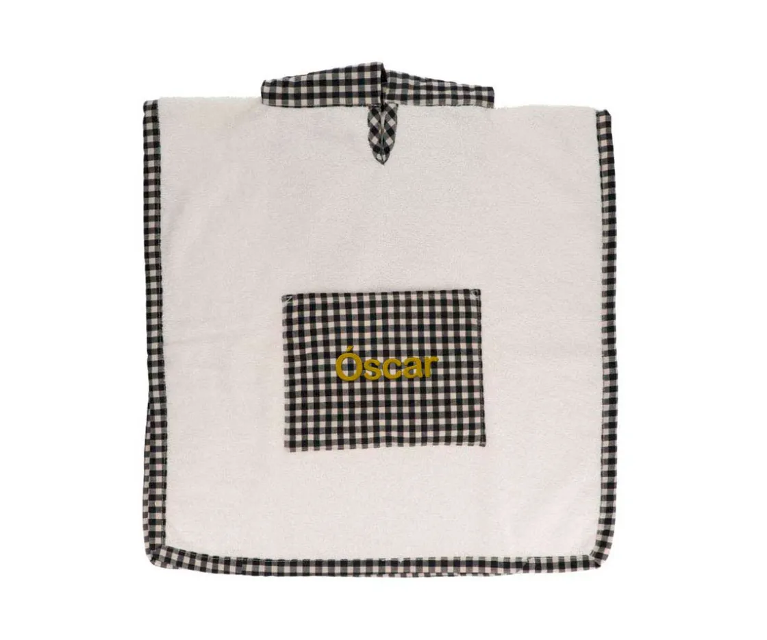Con este poncho de Cristina de Jos´h, los peques estarán bien arropaditos cuando salgan del baño. Este poncho cuenta con un bolsillo deltantero que se puede personalizar con el nombre de tu peque para hacerlo único y especial.