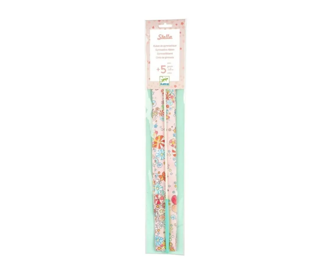 Esta cinta de gimnasia, bonita por sus motivos florales, es ideal para que tu peque practique sus figuras favoritas de gimnasia rítmica.