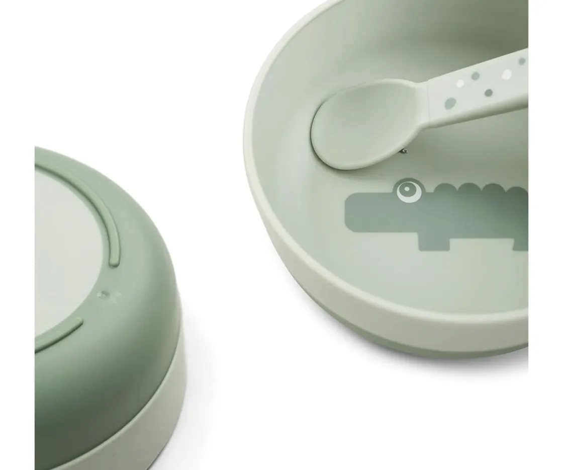 Done by Deer Bol Antideslizante Croco Green^ Vajilla Infantil