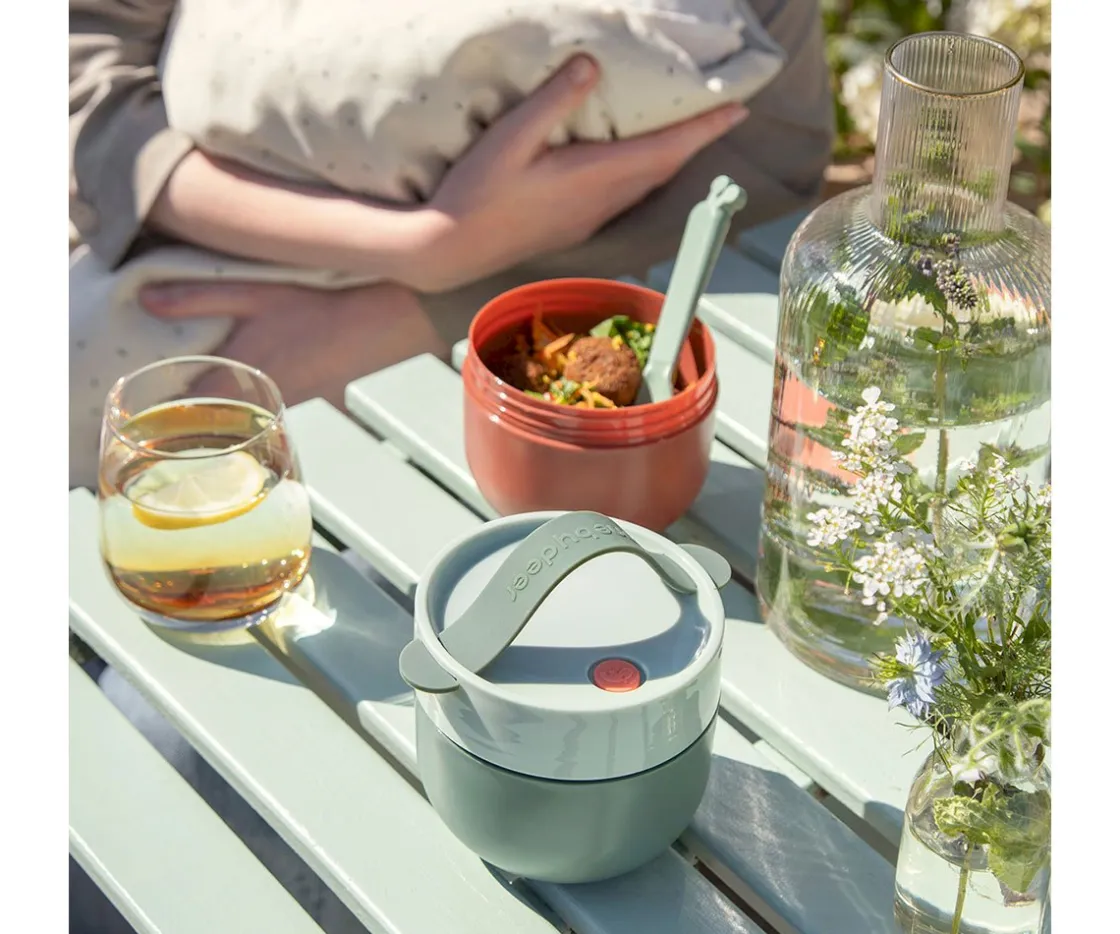 Este práctico bol de almuerzo es perfecta para toda la familia. Tiene tapa de rosca y una cómoda asa de transporte de silicona extraíble. Lo podrás llevar a todas partes, a un picnic en el campo, un día en la playa o para la merienda en el parque.